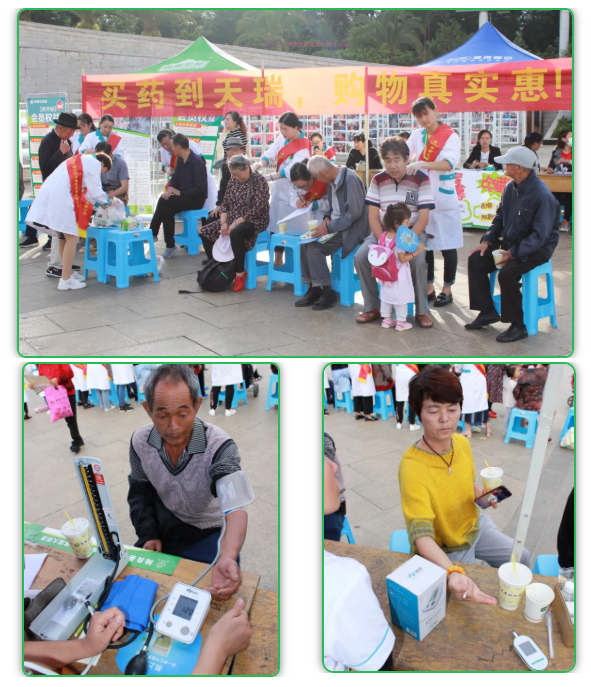 天瑞大药房员工为到场群众免费开展阿是理疗(刮痧)、免费测血压、免费测血糖